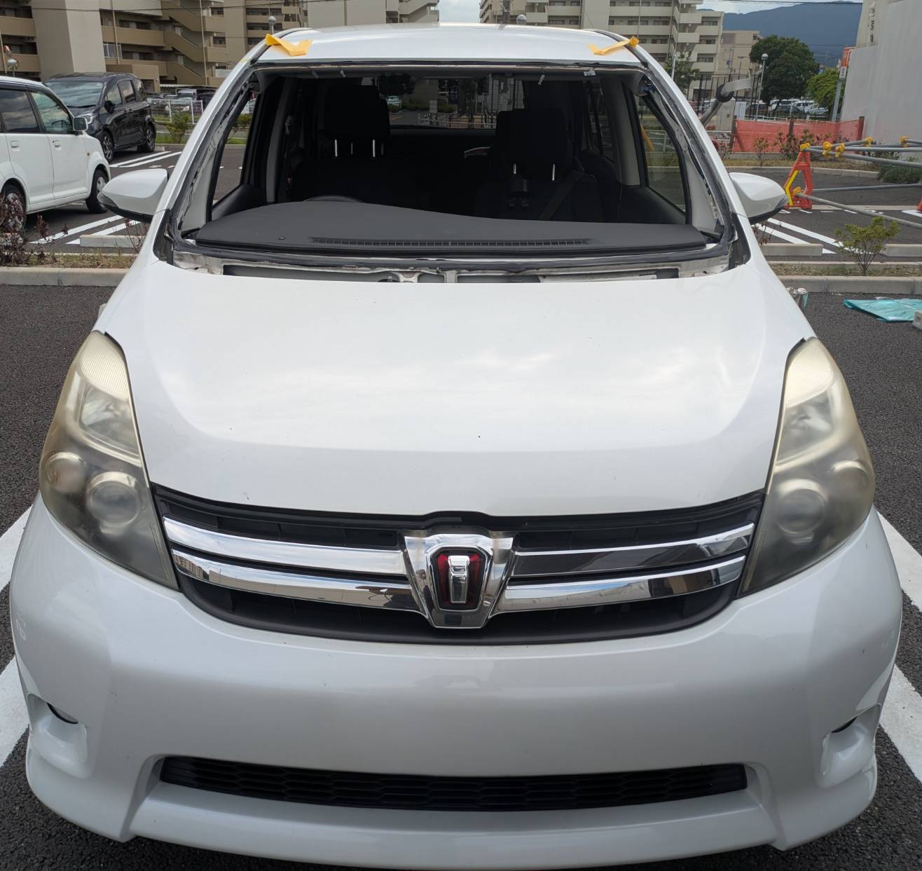 福岡市南区 トヨタ アイシス フロントガラス交換 出張作業