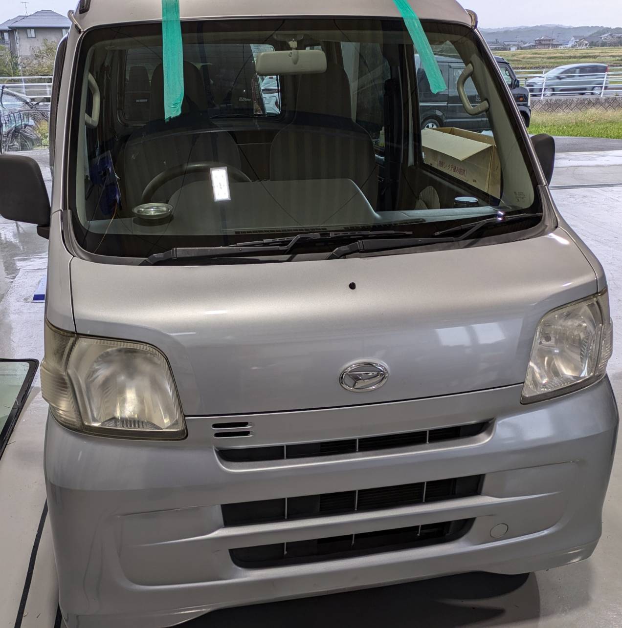 福岡市東区 ダイハツ ハイゼット フロントガラス交換 出張作業