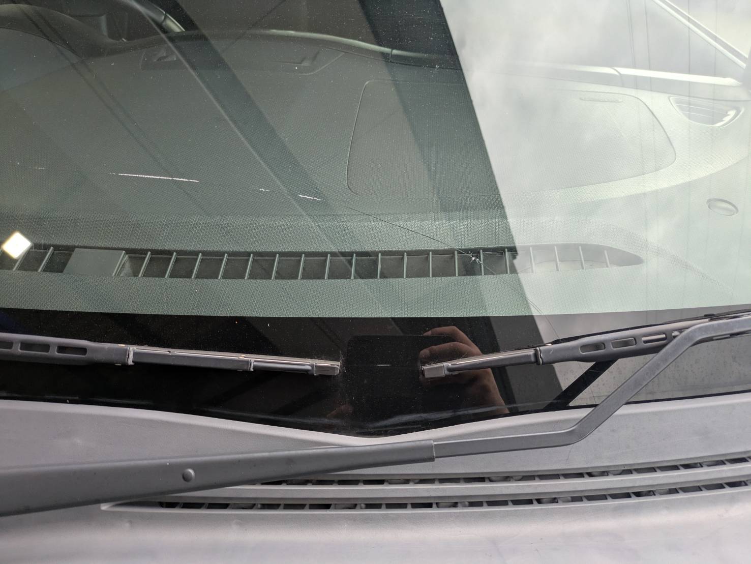 福津市のお客様から「フロントガラスにヒビが入ってしまった」とご連絡いただきました。現場で確認すると、ヒビは助手席側にあり、放置すると徐々に広がるリスクがあったため、その日のうちに交換作業を行うことになりました。