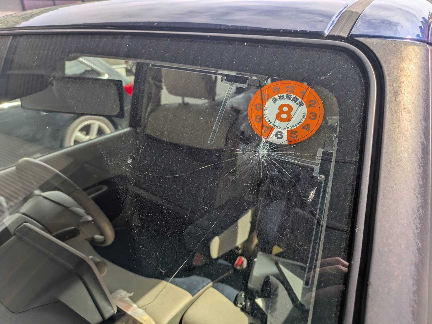 赤間のお客様から「助手席側のガラスに大きめの飛び石ヒビが入ってしまった」とのご連絡をいただき、車両を引き取り対応となりました。ヒビは走行中に広がる可能性が高く、安全面を考慮して早急に交換を実施しました。