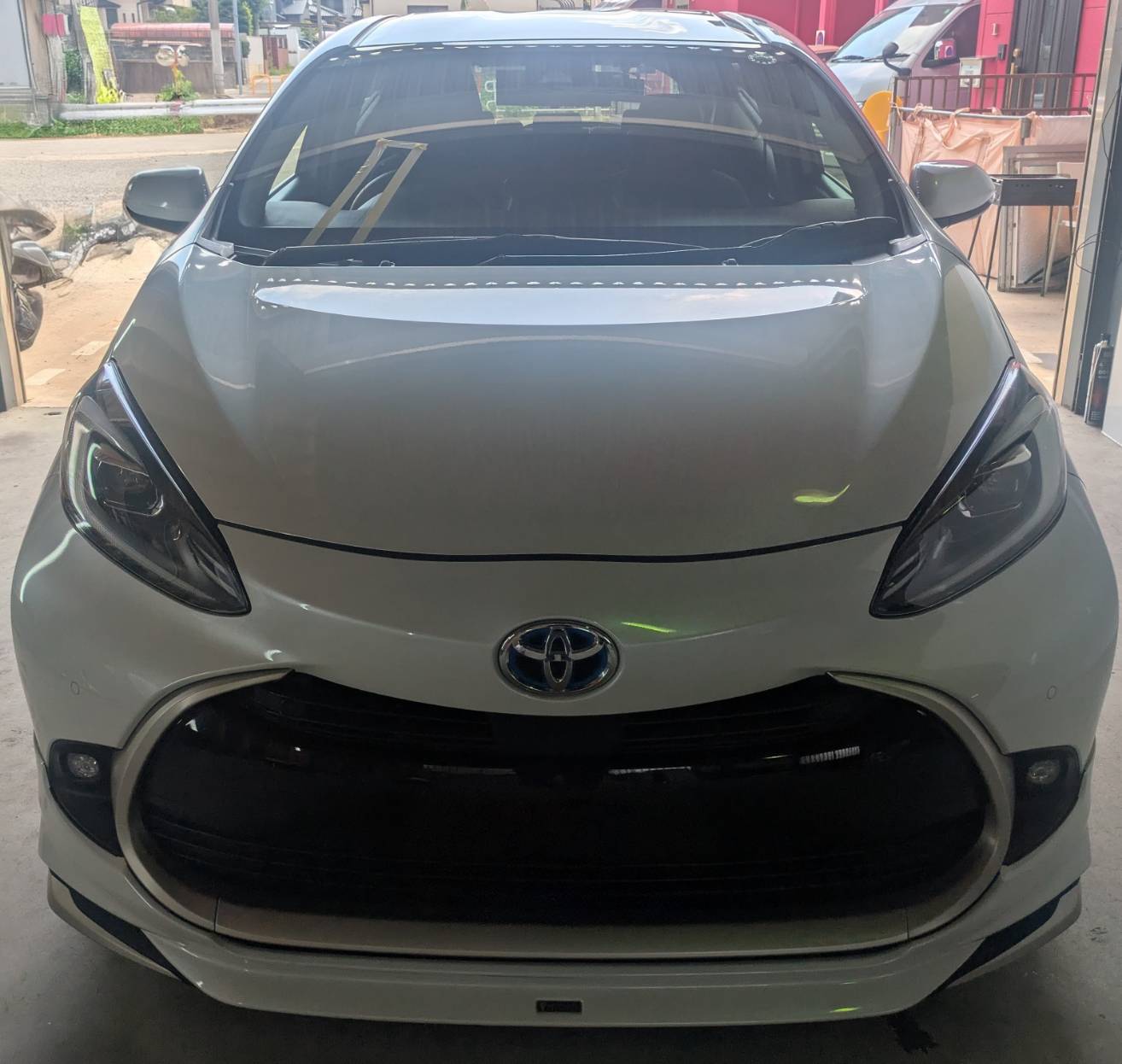 福岡市西区 トヨタ アクア フロントガラス交換 出張作業